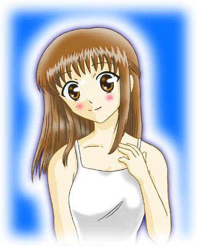涼しげな楽羅です〜。夏を先取り〜♪て感じですかぁ?(^^) 着ているキャミの色は最初から白に決めていたのですが実際やってみると結構冒険でしたね、この色ってハイライト使えないし。頬のピンクを少しキツめにしてバランスをとりました。